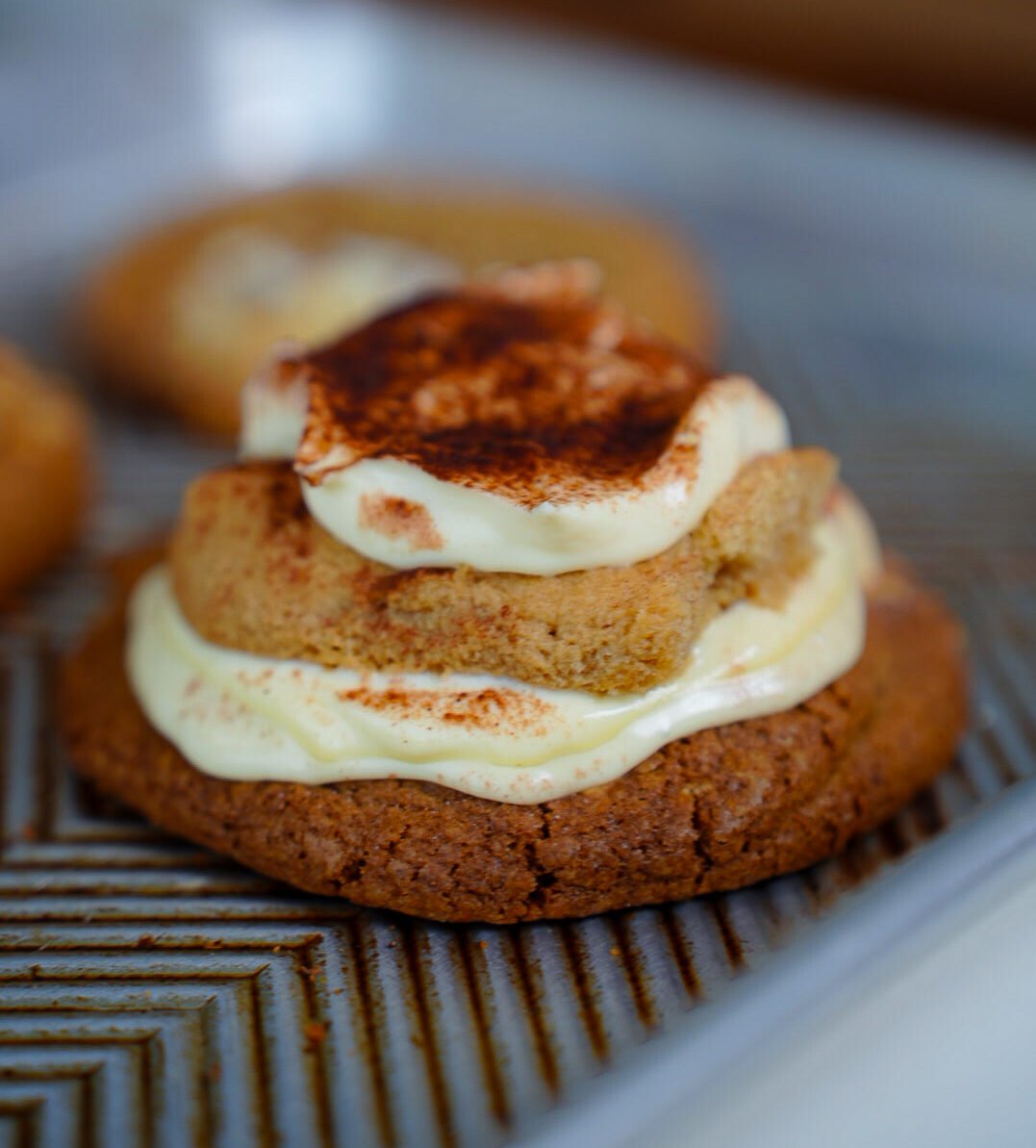 The new and improved Tiramisookie is basically a perfectly crisp white chocolate chip cookie with homemade gluten free tiramisu stacked on top of it! Worlds collide with this one.