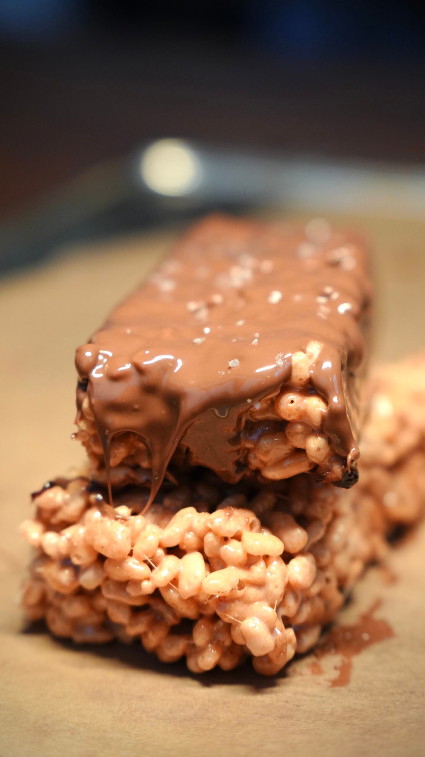 Rice crispy dessert chock full of protein and smothered in milk chocolate!